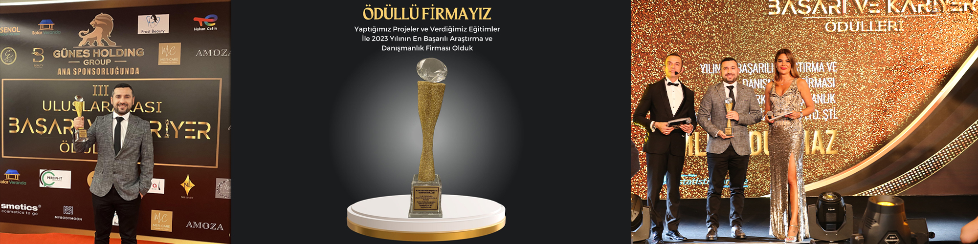 Yaptığımız projeler ve alanımızda verdiğimiz eğitimler ile 2023 yılının "En Başarılı Araştırma ve Danışmanlık Fİrması" ödülünü aldık. Bu alanda ödül alan ilk yerli firma olduk.